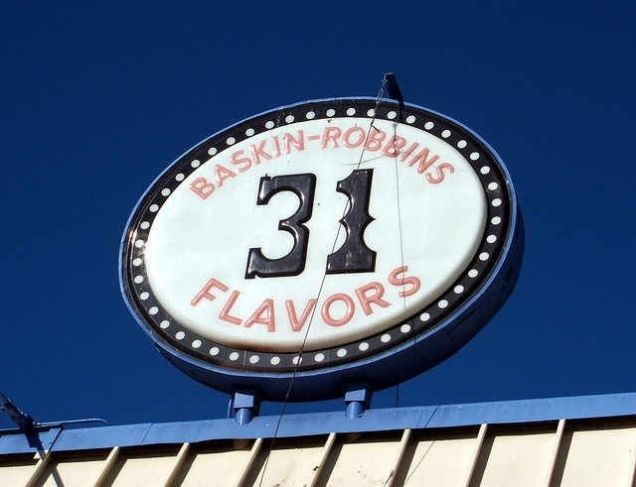 Such potential first jobs barely crossed my mind, however, for I was fortunate enough to live close to both a frozen custard stand (for the unfamiliar, frozen custard is richer, fattier ice cream freakishly more popular in Milwaukee than most other cities) and a Baskin-Robbins 31 Flavors. The former, named General Custard’s (“Food Good Enough to Make a Stand For!”) was a block closer, but also a burger joint. Not wanting to return home reeking of grilled onions and meat every night, I gravitated towards the Baskin-Robbins, which had been in its long, narrow storefront location since before I was born. In addition to loving the stuff (oh how I would anticipate what each Flavor of the Month would be when I was a tyke!), scooping ice cream was also something I knew I could probably do, even with my total lack of experience.
