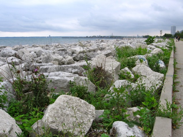 On this particular visit (July 2003), we attended Festa Italiana at Maier Festival Park; above are the white jagged rocks along Lakeshore State Park Inlet.