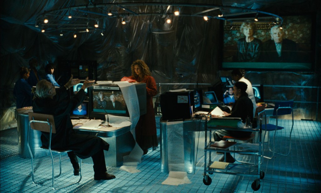 3:22 – Around here is where I start to drift. The theatrical cut apparently contains less than an hour of the Australia stuff while this has more than two. I miss the “on the road” part of this road movie—it builds more momentum than waiting to see if blind Moreau can see the images taken by the special camera. I imagine the actress lying down in the simulator thinking to herself, “Merde, what did I get myself into?” The “simulations” themselves have a flash video quality and sound not far off from the early days of dial-up internet (so that’s prescient of ’99.)