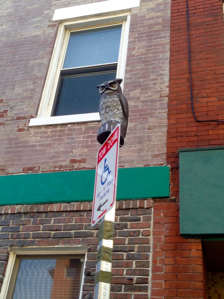 Also spotted in the North End: a fake owl on top of a tow-zone sign. I don’t get it, either.