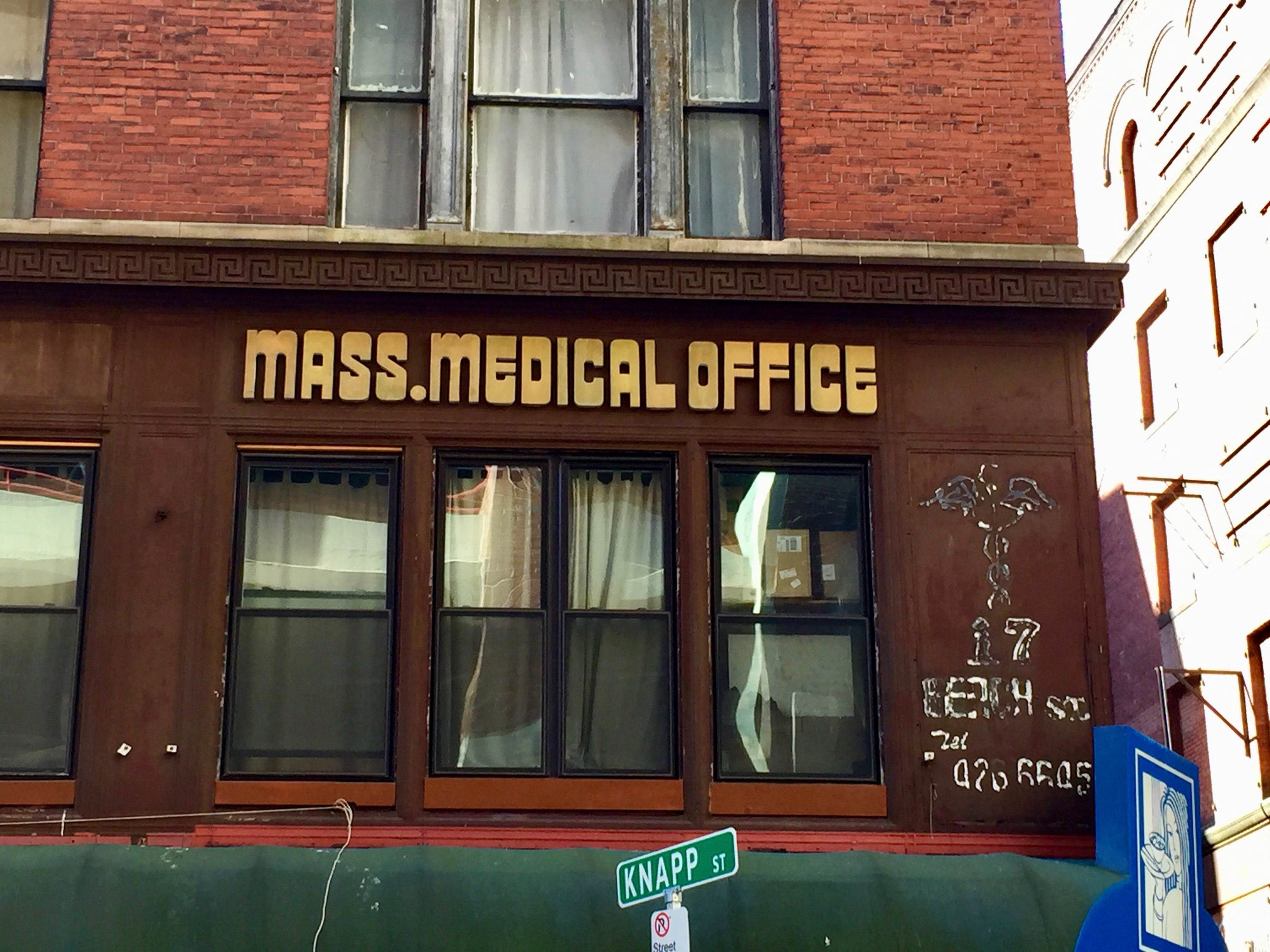 On the opposite end of downtown is Boston’s Chinatown, an ideal spot for Dim Sum but perhaps not so much for those seeking medical attention. My first thought upon seeing this unflashy dated signage in 2015 was, “Oh, really?”; according to Google Maps, work was being done on it as of 2020.