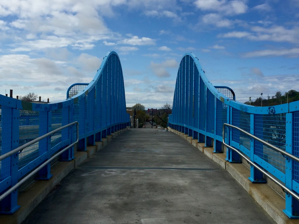 Stepping away from Central Boston, it’s the Marmo Pedestrian Overpass in Orient Heights, a section of East Boston that I visited in May 2016 simply because I could (the Blue Line T goes out there.) It’s a pleasant, unremarkable neighborhood, most notable for Constitution Beach and this colorful footbridge. I posted a bunch of pix from there on my now-defunct Tumblr and maybe I’ll repost some of them here one day.