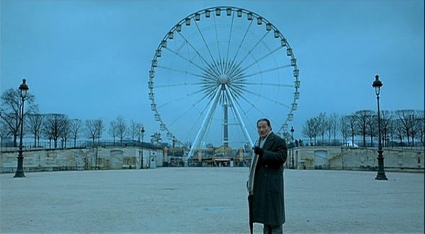 None of these encounters have a particularly happy ending (so to speak.) Chen fails to find much of a connection with the Hong Kong woman and leaves the hotel disappointed. The prostitute absconds with Lee’s suitcase of wristwatches, sneaking away before he awakens. When he arrives home, Lee finds his mother in bed holding the urn, unresponsive. She’s obscured by camera to a degree where it’s indeterminable whether she’s dead or just sleeping—Lee just silently climbs into the bed, embraces her and that’s the last we see of either of them. However, the film concludes in Paris. As Chen falls asleep on a lounge chair in a park next to a lagoon, a familiar suitcase last seen escaping an abandoned vehicle floats by her only to be retrieved from the water with an umbrella handle held by a man whom the camera gradually pans up to reveal as Lee’s father. He walks away from the lagoon with the suitcase in hand; standing and facing the camera, Tsai reveals a giant Ferris wheel behind him: it’s another clock-like figure, perhaps the grandest one so far. Lee’s dad turns around and walks beatifically in its direction. The screen turns to black with the director’s dedication, “To my father and Lee Kang-sheng’s father.”