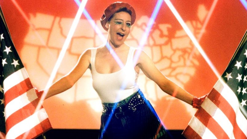 Cheerfully billed as “A Saturday Night Television Special” starring Sissy St. Claire (Sophie von Haselberg), writer/director Amanda Kramer’s art piece may feel as if it’s beaming in from another planet to those unfamiliar with 1970s/80s variety shows. But she understands that if you’re going to make a feature-length pastiche, pinpoint accuracy is required (smeary video in the 4:3 standard definition format, elaborate wigs, neon colors, the requisite hanging mirrorball, vintage-looking graphics, etc.) It also gradually transcends its premise, peeling off layer after layer of everything that goes into a performance and the toll it can take on the performer’s psyche.