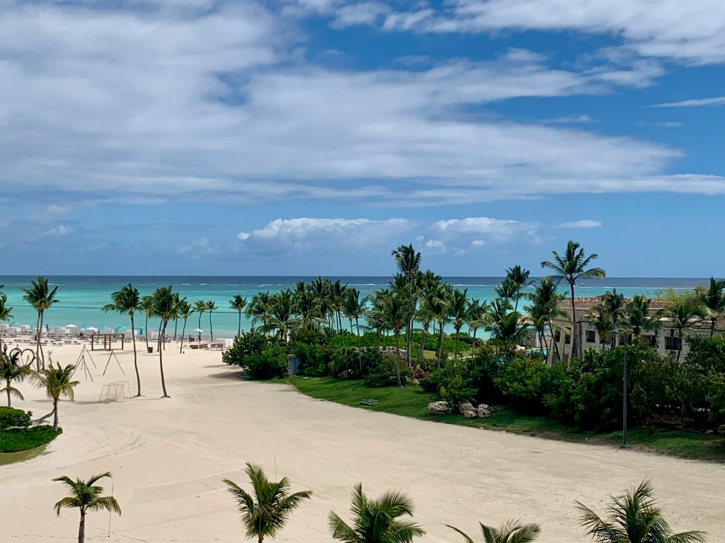 One could see what was technically the southern end of Juanillo Beach from our room’s deck (as well as the odd, castle-like structure to the right, part of the adjacent Sanctuary Cap Cana resort.)
