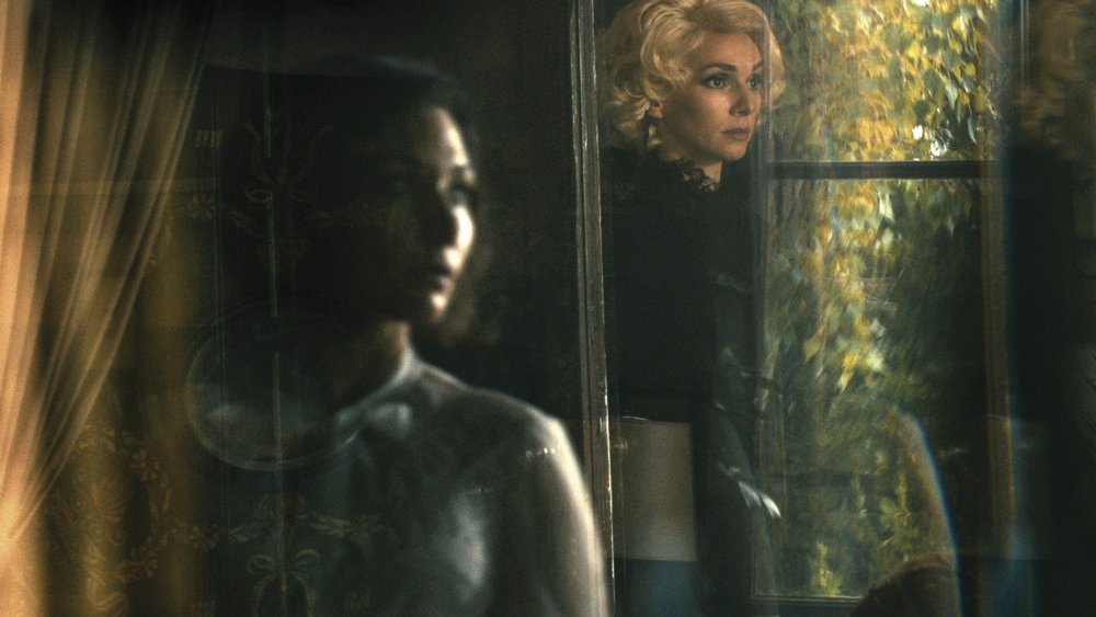 A single, middle-aged lepidopterist (one who studies butterflies and moths), Cynthia greets Evelyn with a curt, “You’re late” before letting her into the house. One immediately detects how curated the place is, as eloquently considered and conceived as anything out of Architectural Digest. Between the furnishings and the characters’ hairstyles and clothing, it also easily looks like it could be the 1970s, yet there’s something not-quite-restricted to that period suggesting this could be reasonably set during any time since that decade (it’s also devoid of devices such as cell phones or computers that would render the palette a deliberate anachronism.) Certainly, such an environment feels like a deliberate provocation, meant to invoke something retro without placing it in a concrete context. It fascinates not because it necessarily begs us to ask when is this actually taking place but more like why does it look like the past frozen in amber?