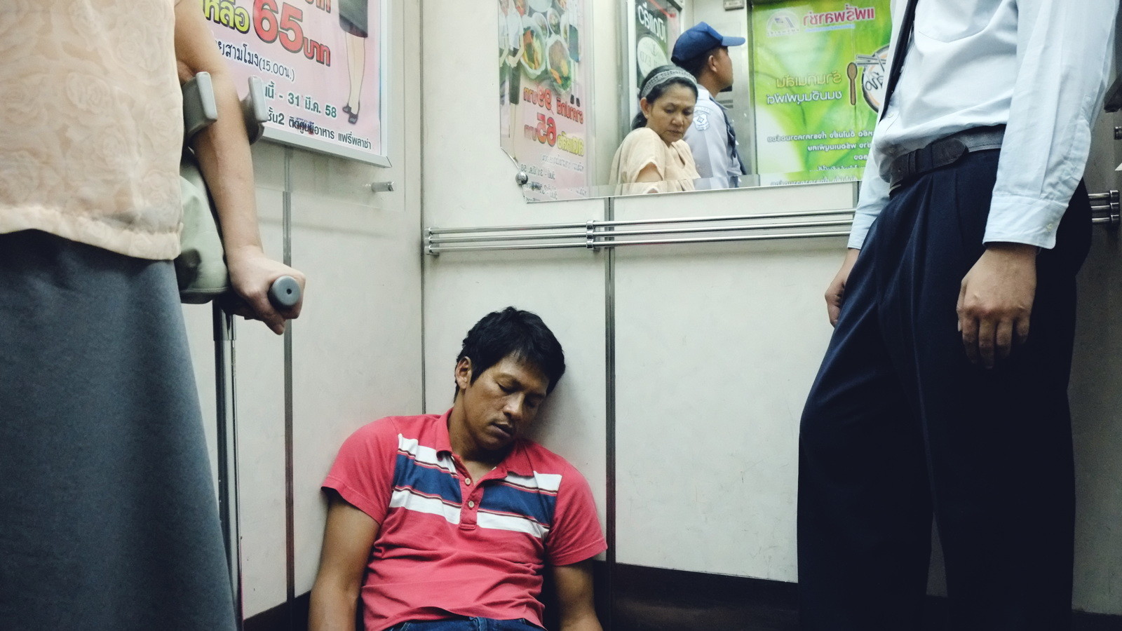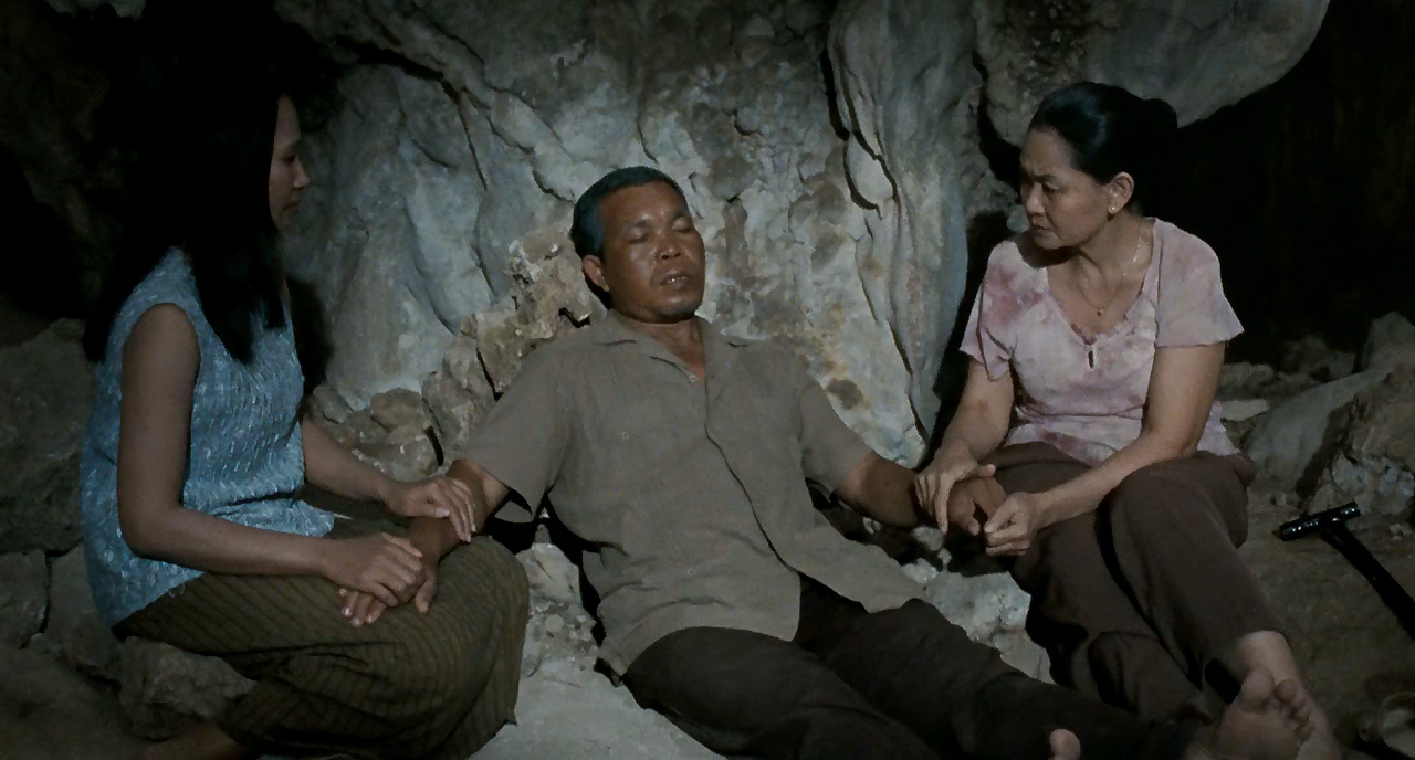 Enter Keng (Jarinpattra Rueangram), a young medium who works for the FBI. Known for her ability to contact the spirits of murder victims and missing persons, she’s at the hospital to sit with the sleeping soldiers (and occasionally, their wives) and perform psychic readings in order to understand their thoughts and dreams while in their unconscious states. Jen befriends both Keng as well as Itt (Banlop Lomnoi, another Joe regular), one of the younger, handsomer patients. Her burgeoning connection with the latter is motherly rather than sensual, but soon transcends such parameters: “It’s as if I’m synchronizing with that soldier, or he’s sleeping through me,” she says aloud at one point. As Jen spends more time bonding with both the psychic and this soldier, she herself enters altered, supernatural states of mind, rendered by Joe matter-of-factly, stressing both halves of the term “magical realism” as he tends to do in his work. One such example: not long after visiting a Buddhist shrine with Richard, Jen herself is visited in the nearby park by two women who casually reveal themselves as living embodiments of the princesses the shrine saluted in statue form. “Both of us are dead as well,” they tell Jen before leaving her with this wisdom: “Those soldiers will never recover.”