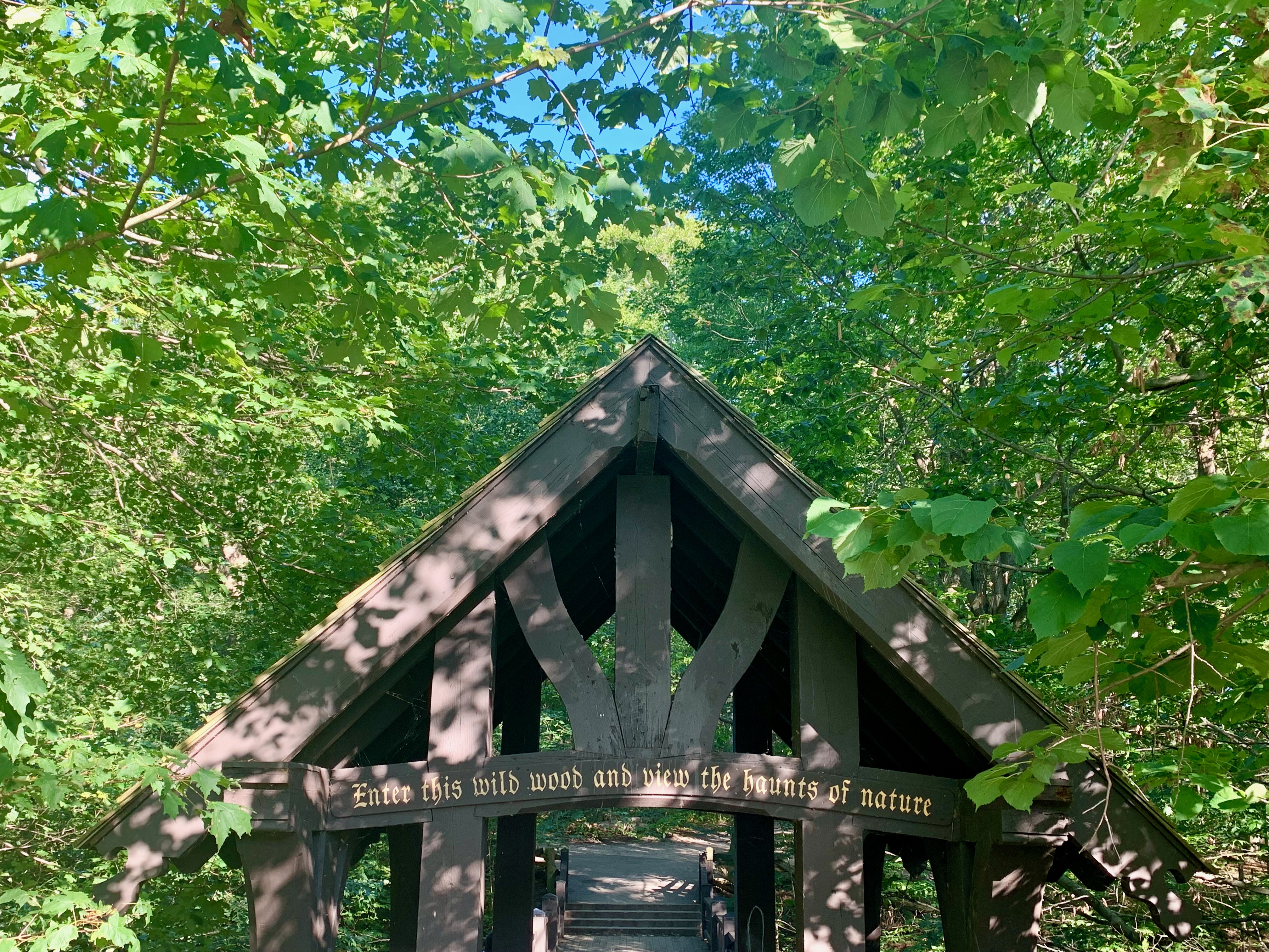 After crossing the bridge, one is led through a series of paths, stairways and other bridges along a ravine.