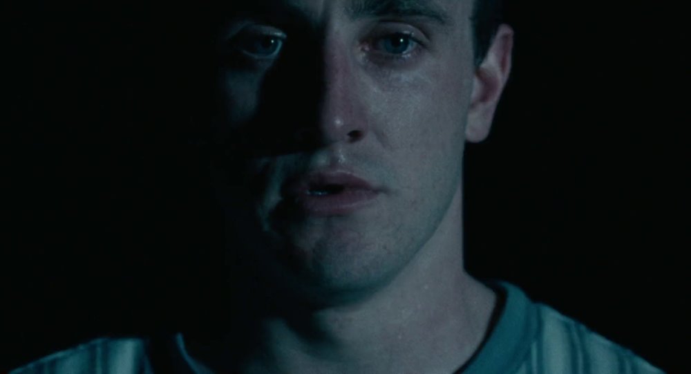 As the song climaxes, young Sophie and Calum hold each other on the resort’s dancefloor in one moment, while adult Sophie and Calum do the same at the rave. Then, there’s a cut to camcorder footage of young Sophie waving goodbye to Calum at the airport. A slow pan to the right ends with adult Sophie sitting on her couch, watching this footage on her TV. Another pan shifts the action back to the airport, only from Sophie’s point of view as Calum films her. In this final shot, he stops his camera and stares into Wells’. He then slowly walks away from us down a long corridor. He exits through doors at the corridor’s end into the rave, briefly visible until the doors close and he disappears from Sophie’s life perhaps temporarily, possibly permanently.