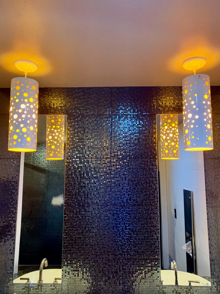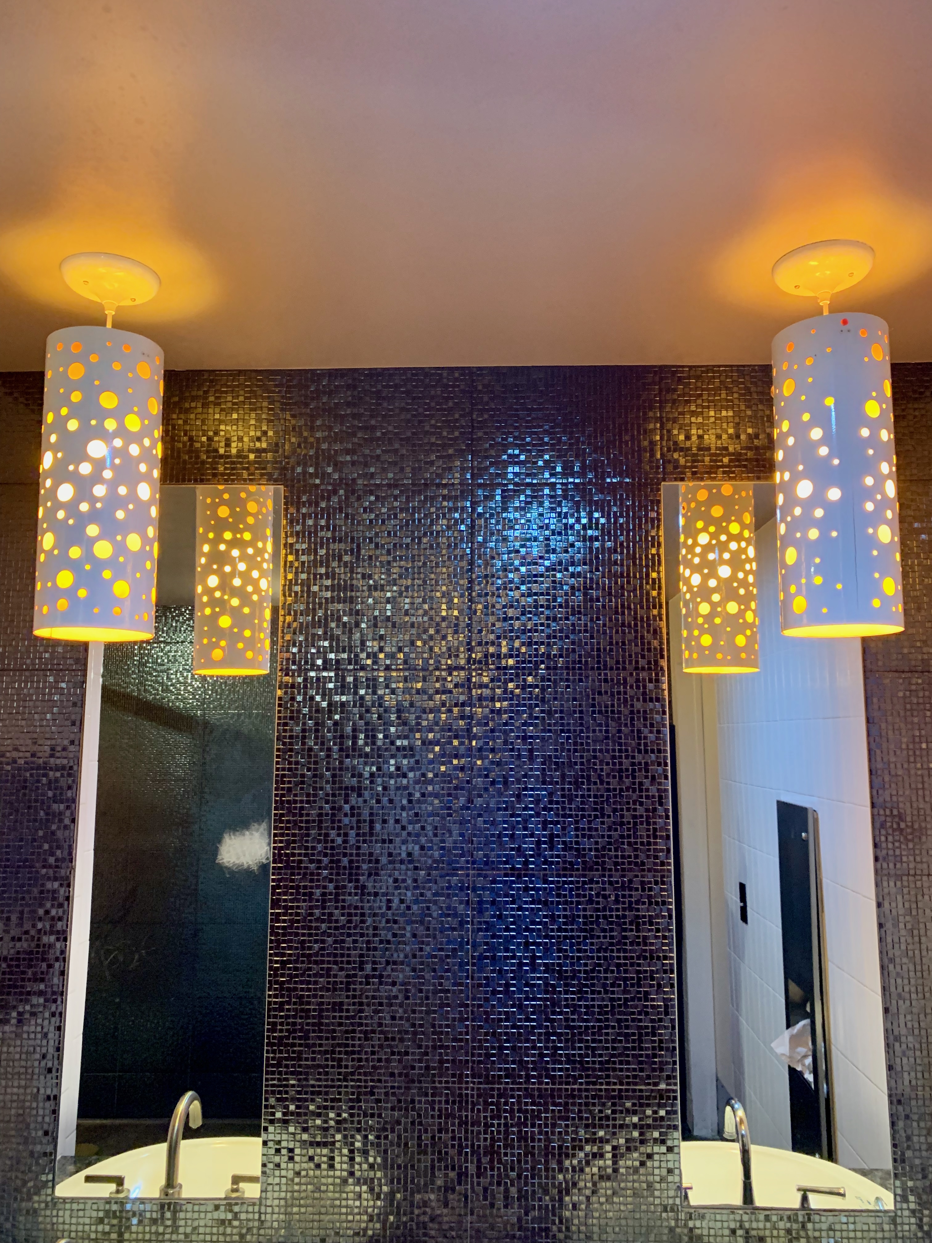 I couldn’t resist of shot of The Reef’s delectably retro (no matter how faux) bathroom lighting fixtures.