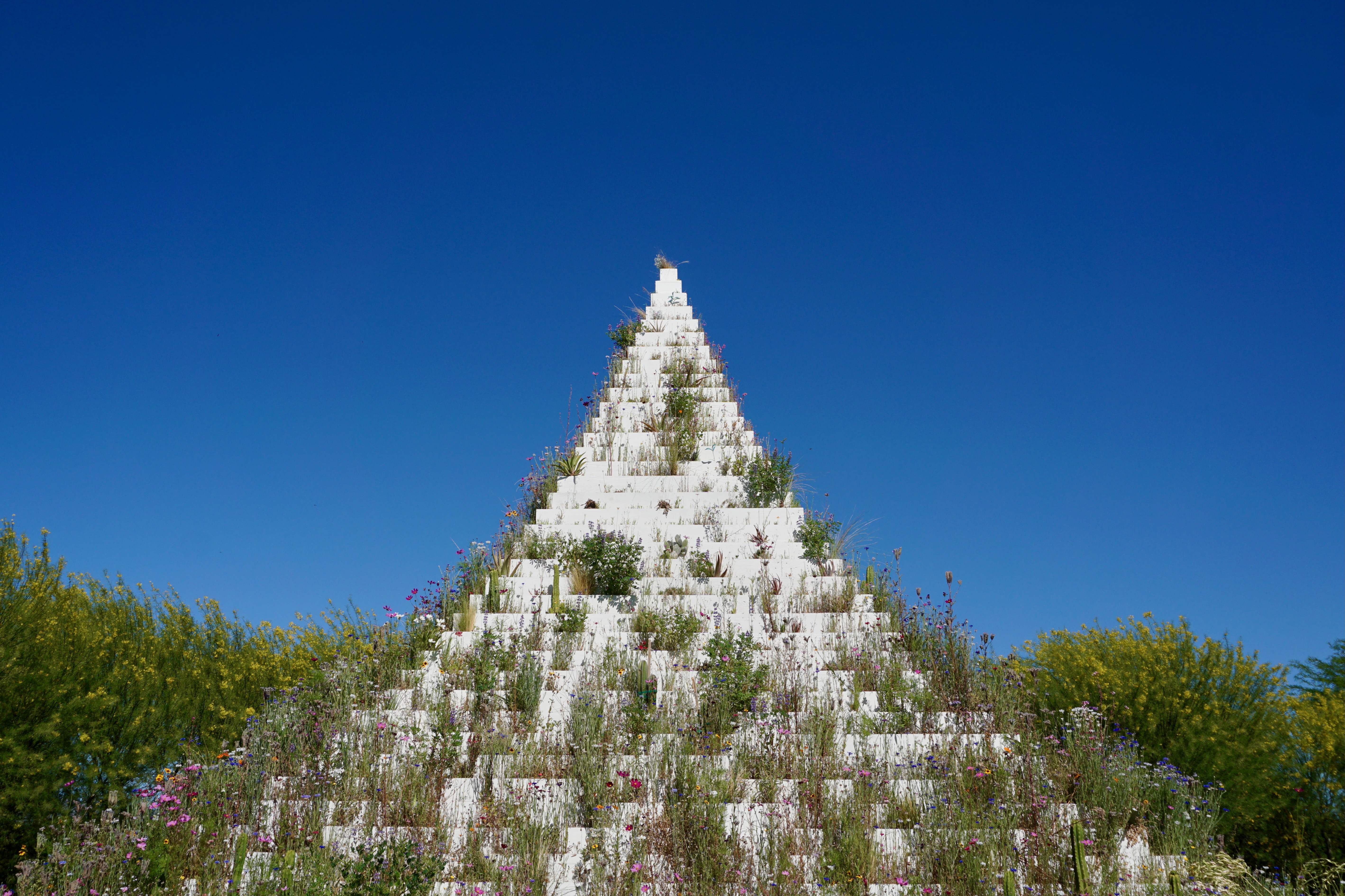 “A monumental step pyramid planted with rows of vegetation native to the region,” it cut a striking figure against the mountains to the east.