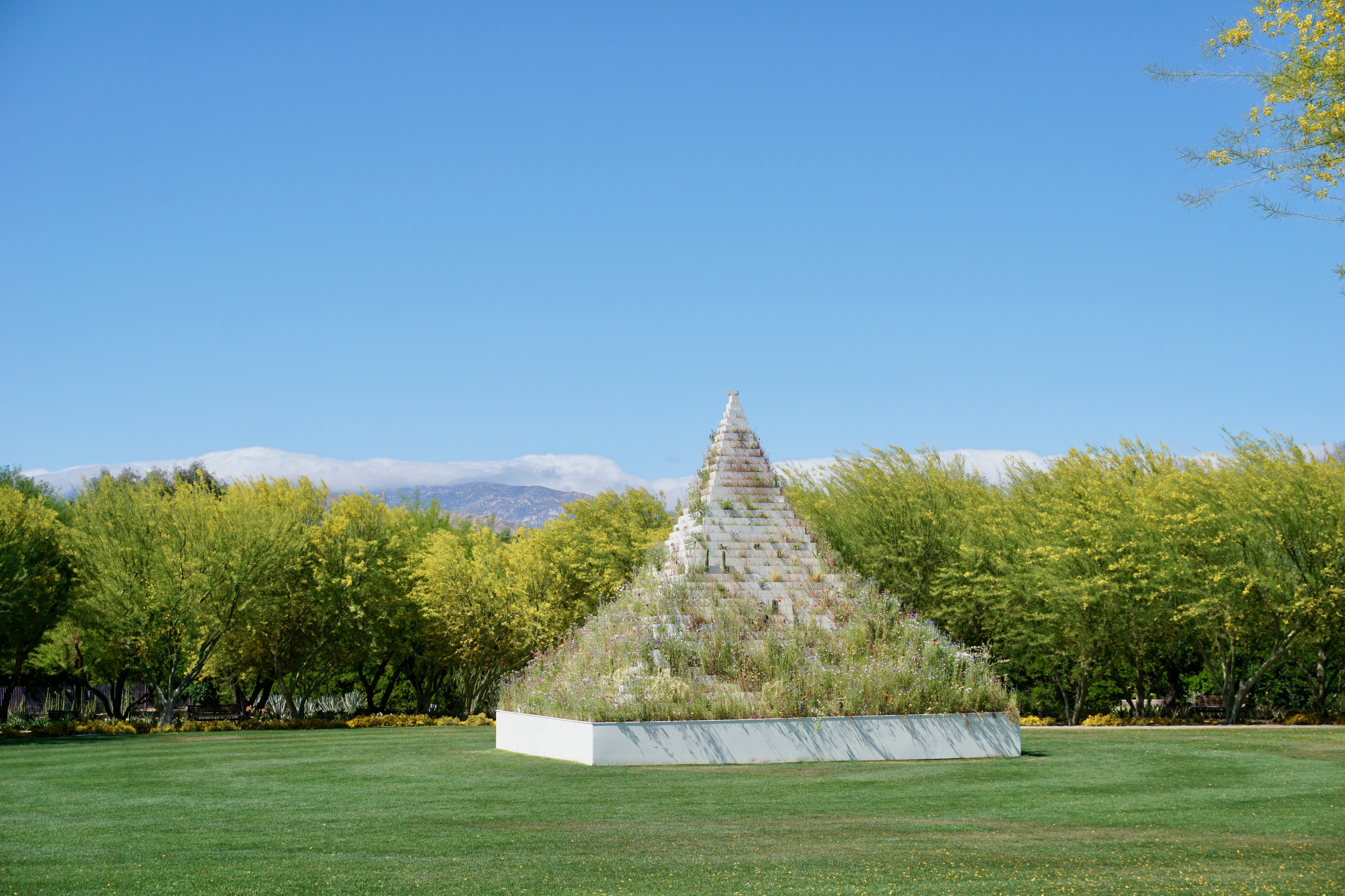 At the time of our visit, as part of Desert X, the gardens housed an outdoor art commission, Agnes Denes’ The Living Pyramid.