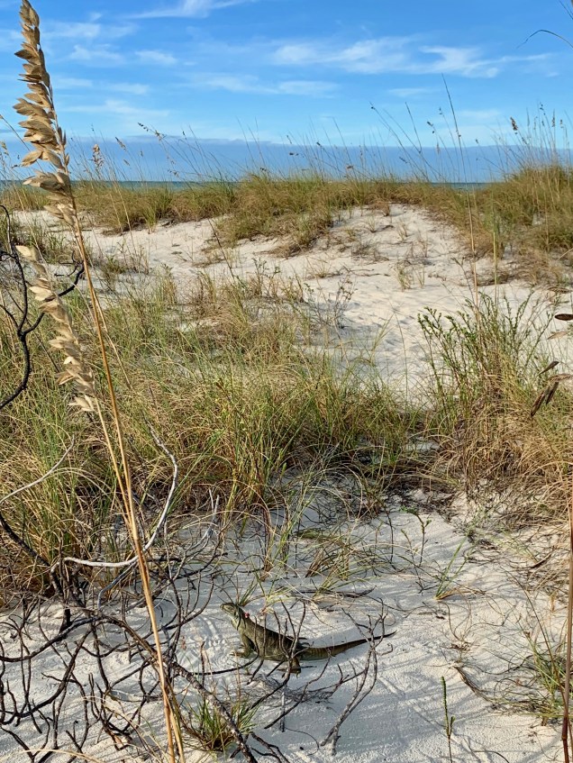 Assuming it’s one of the area’s lovelier public beaches, with plenty of shaded spaces to suntan and relax along with a bar/grill where we dined on lobster, grouper ceviche and frozen cocktails for lunch.