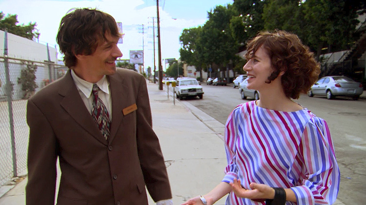 Your average indie ensemble comedy-drama would emphasize and gather momentum on the strength and timing of its connections (and disconnections); Me and You… instead fixates on more personal, idiosyncratic motifs. Set in an unglamorous-verging-on-seedy Los Angeles residential neighborhood, it takes what could be ordinary, everyday situations and swiftly turns them inside out: a father and his young daughter buy a goldfish in a plastic bag filled with water from a pet store, but he accidentally leaves the bag on top of his car and drives off with only Christine and Michael initially witnessing it. Robby hears a mysterious tapping noise every day outside his mom’s house; she dismisses it as the sound the streetlights make when they turn on, but he remains unconvinced and obsessed. Sylvie plays with neighborhood kids Robby’s age as if she were their mother but takes this tendency to obsessive heights when she shows Peter her secret hope chest, lovingly layered with items she’ll use as a wife and mom one day (“It’s my dowry,” she states matter-of-factly.)